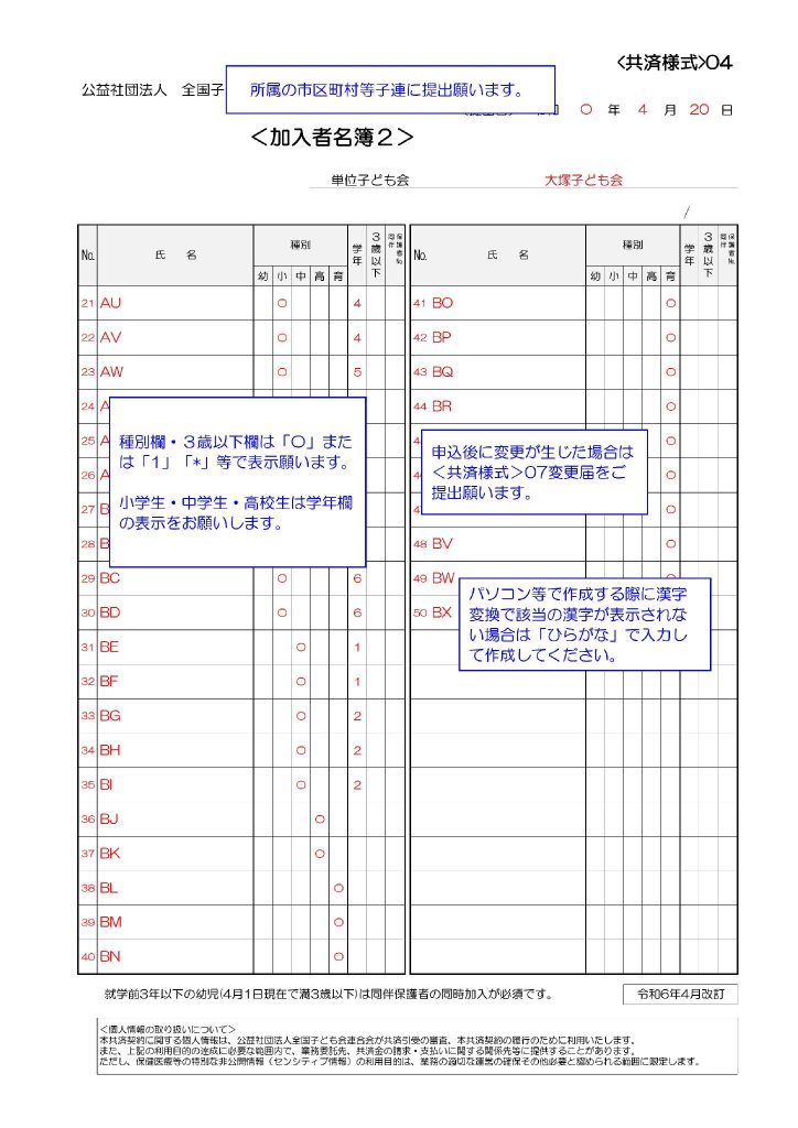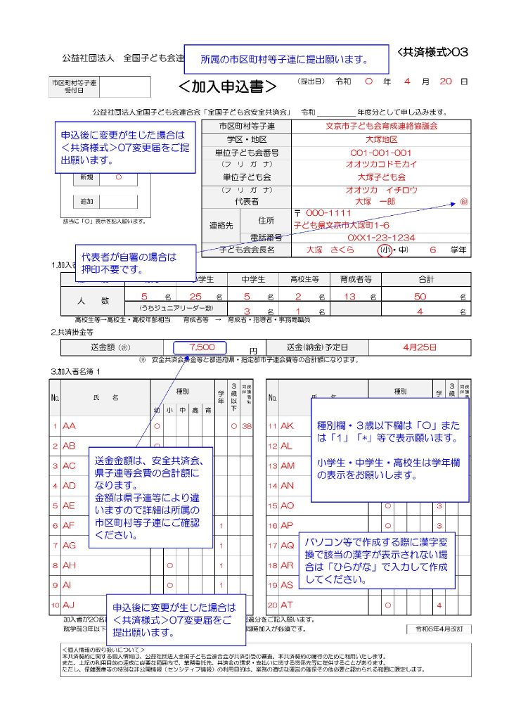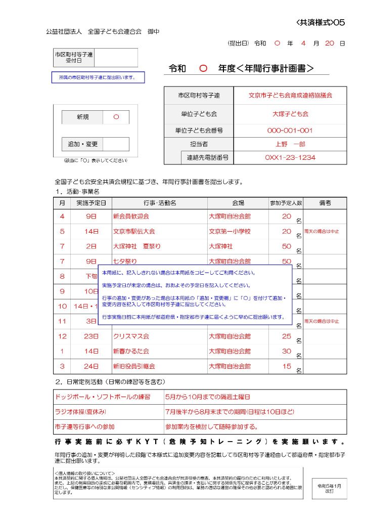 2025年度から各子ども会(単位子ども会)の安全共済会(保険)加入=会員登録については、その情報入力方法が、紙からネット申請に変わります。尚、登録する情報は「加入申込書(追加含む)」と、「年間行事計画書」となり、「共済掛金報告書」の提出と集金作業については、これまで通りに行います。